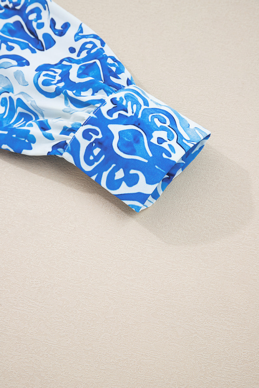 Sky Blue Ethnic Printed Tie Split Neck Button Front Puff Sleeve Shirt