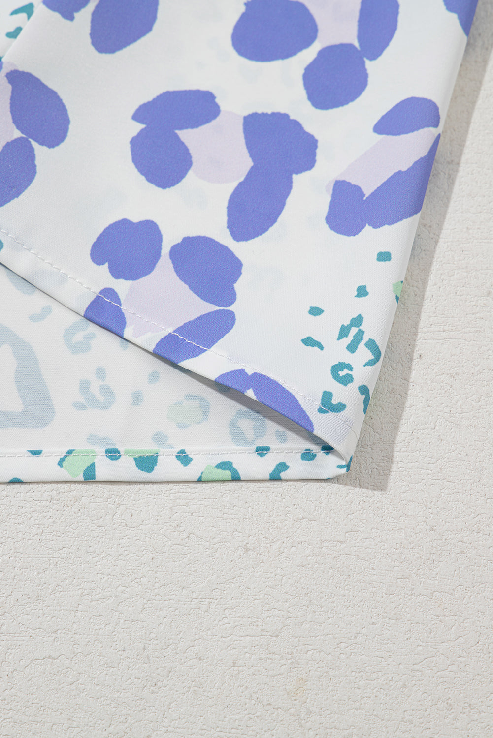Sky Blue Mixed Leopard Print V Neck Short Sleeve Blouse